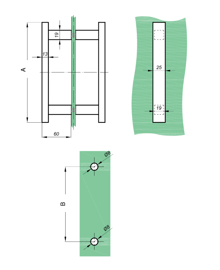 Firkantet greb rustfri stål 25-13 mm
